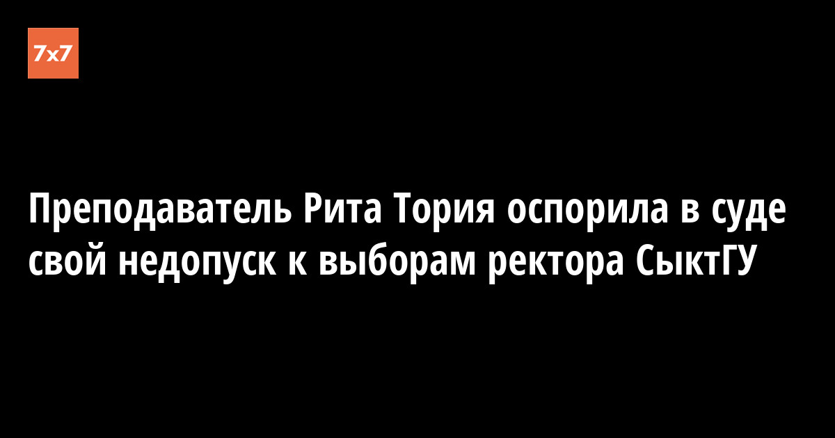 Экс-декан юридического факультета Сыктывкарского государственного университета Рита Тория подала исковое заявление в городской суд об оспаривании решения ученого совета вуза о недопуске ее кандидатуры до выборов ректора СыктГУ. Об этом «7x7» 19 декабря сообщил юрист Виктор Воробьёв, который представляет интересы Тории.