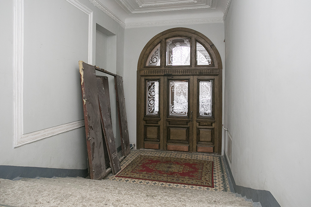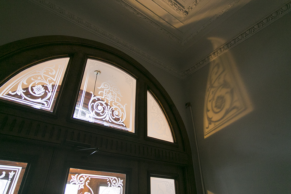 Мы также создали с нуля входную дверь в парадную. От исторической двери [с витражными вставками] оставалась только фрамуга (боковая или верхняя створка — прим. «Бумаги»). По фрагментам [дверей] из других парадных мы воссоздали исторический облик двери.