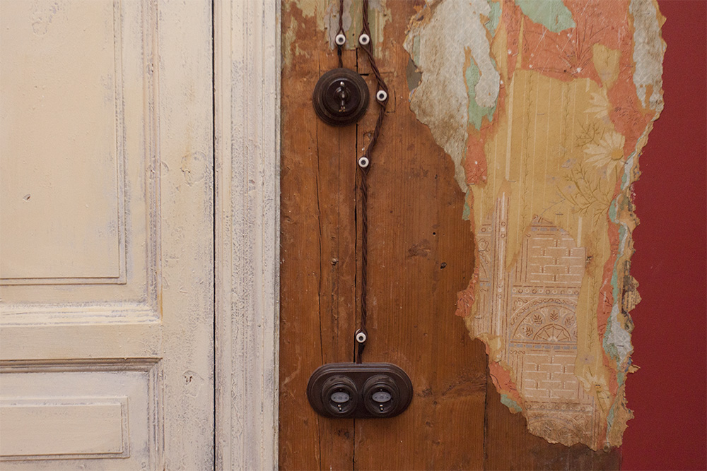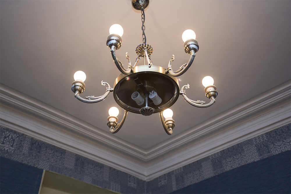 Кроме того, мы полностью поменяли полы: где-то положили линолеум со стилизацией под старый советский, где-то — паркет. Лепнина восстановлена по следам старой — еле видной. Внешней проводки здесь никакой, конечно, близко не было.