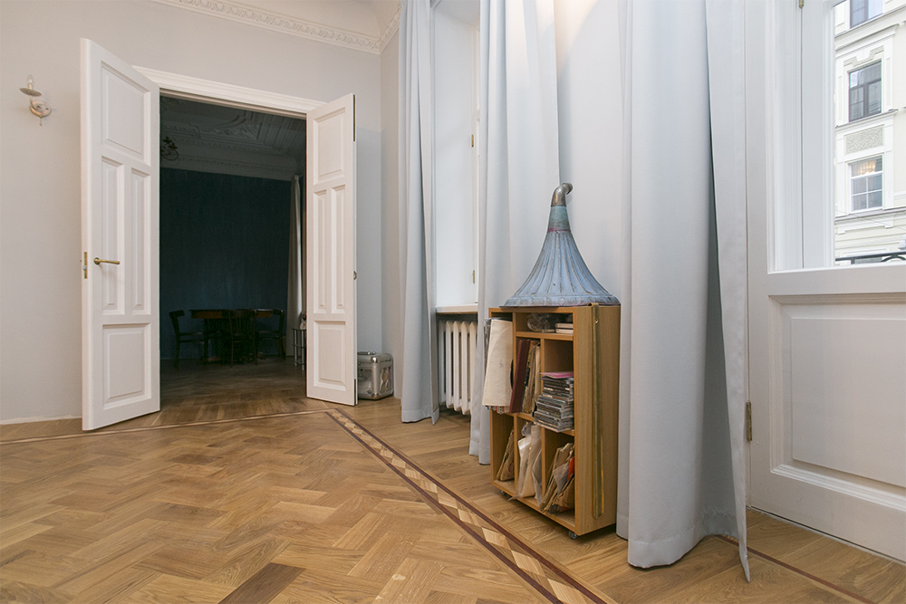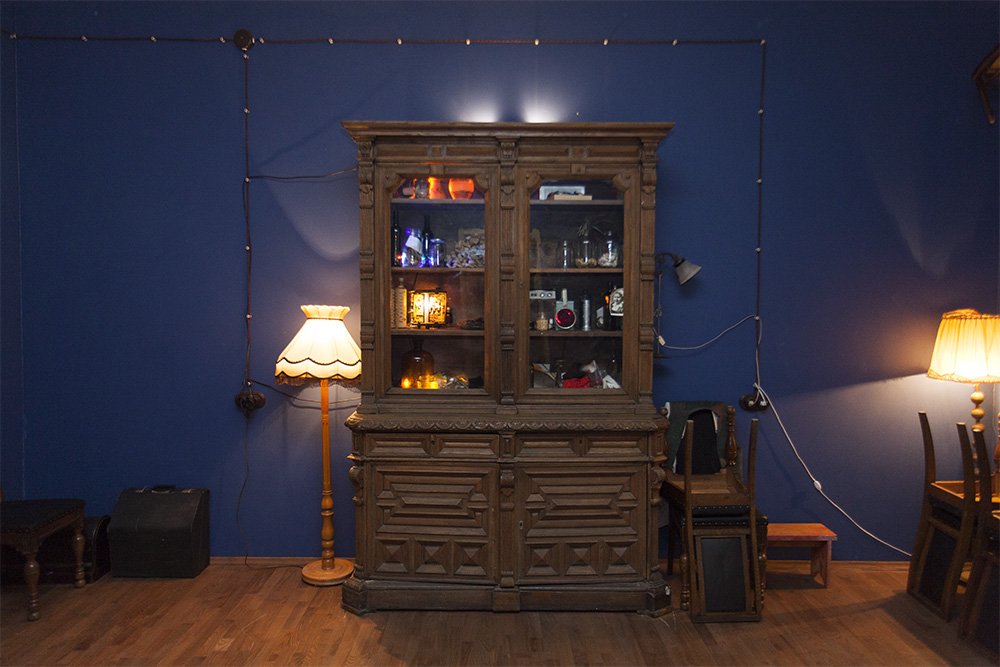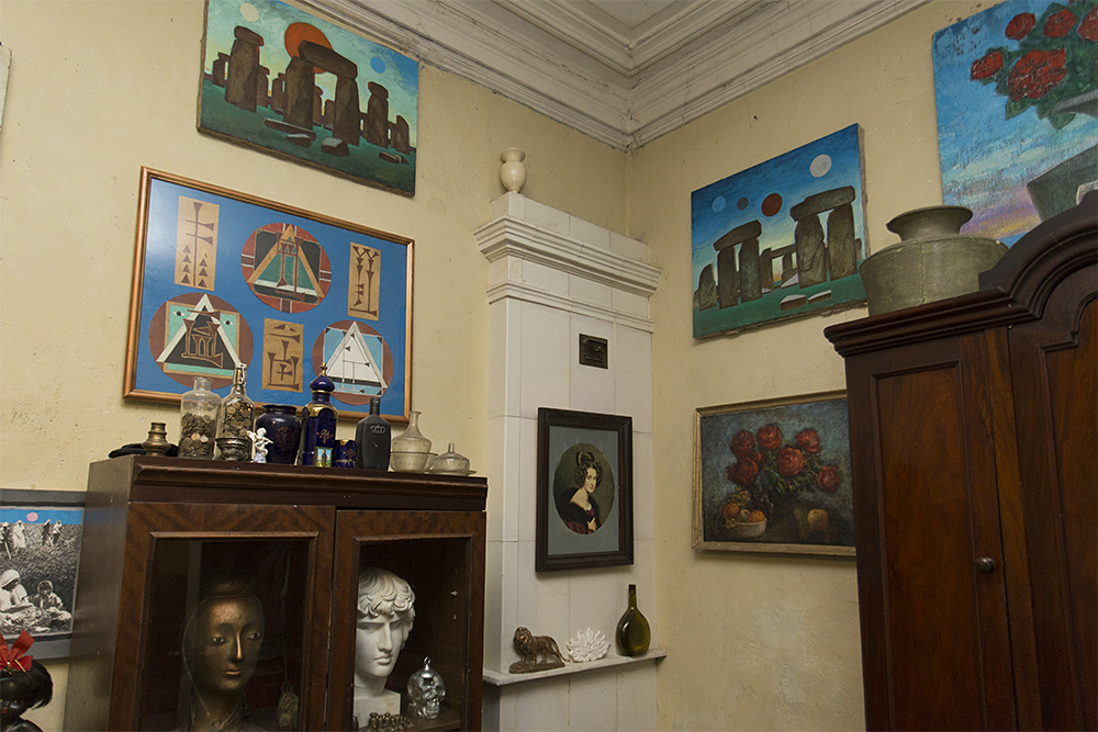 После этого мы начали реконструкцию. Это нежилой фонд: здесь практически ничего не было, только стены и не самые надежные полы. Но благодаря нашей артели художников квартира преобразилась буквально до неузнаваемости. Мы переложили полы, покрасили стены, побелили потолки. И одновременно собирали вещи — мебель, книги, реквизит — по друзьям, знакомым, комиссионкам.