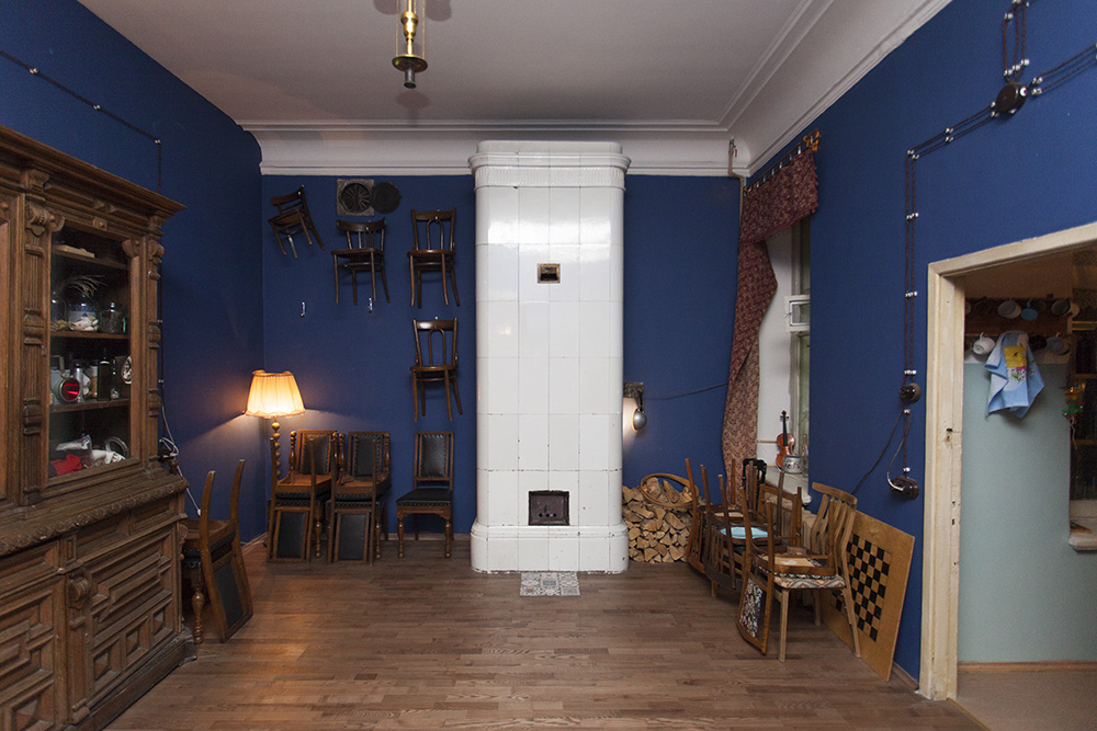 НП: У нас есть гостиная, библиотека, детская, кухня. Кухня — это принципиально, потому что чаепития — часть ритуала творческой истории. В «Квартире» многие узнают предметы из своего детства и быта, трогают их, расспрашивают, откуда какая вещь к нам пришла.