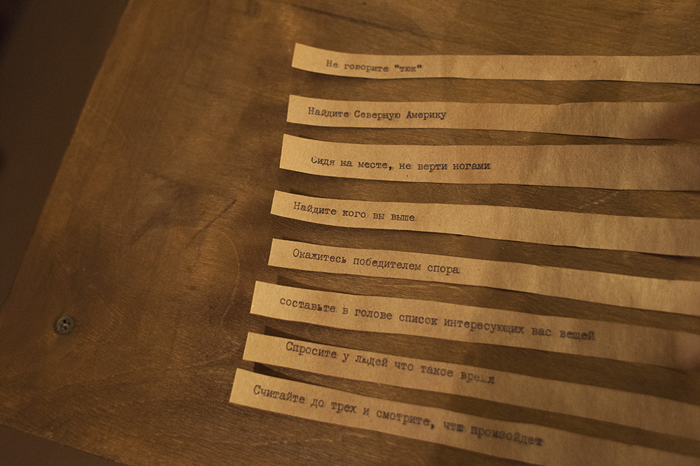 НП: У нас недавно была открытая репетиция для большой группы людей — волонтеров Центра «Антон тут рядом». Мужчине досталось задание разделить вещи на «те» и «не те». Он не успел справиться, но его это так впечатлило, что он решил, выходя из квартиры и уходя домой, обязательно разделить вещи на «те» и «не те». То есть идея работает — это важно, потому, что когда Борис встречал гостей, было ясно, что многие из них не знают, кто такие обэриуты, и имя Хармса им едва знакомо.
