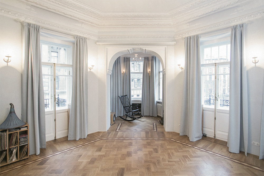 Постепенно я вышел на ценителей старинного интерьера и строителя, который этим занимался. Ключевым открытием для меня стало то, что старые интерьеры были очень хорошо продуманы. Окна, арка, потолок, рисунок на паркете — все они завязаны в единую композицию. Как только ты начинаешь это переделывать, — менять окна, лепнину — всё распадается, и красота исчезает.