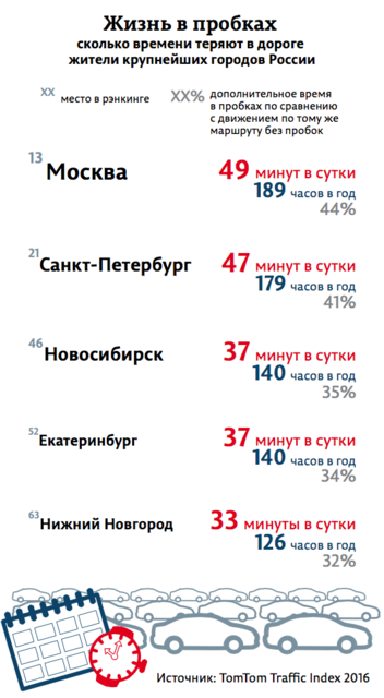 Нидерландская компания TomTom, которая поставляет устройства GPS-навигации, выяснила, сколько времени жители крупнейших российских городов проводят в пробке. Об этом пишет газета «Ведомости».