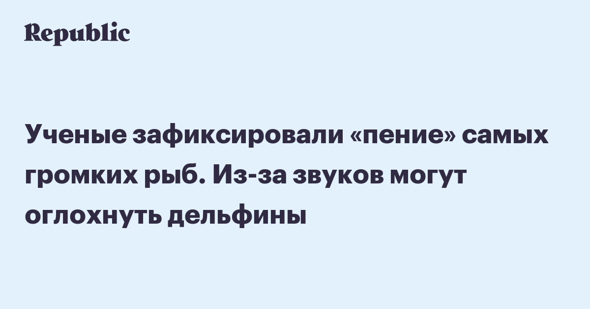 Ученые зафиксировали «пение» самых громких рыб. Из-за звуков могут оглохнуть дельфины