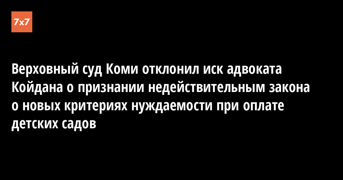 Верховный суд Коми отклонил иск адвоката Койдана о признании недействительным закона о новых критериях нуждаемости при оплате детских садов