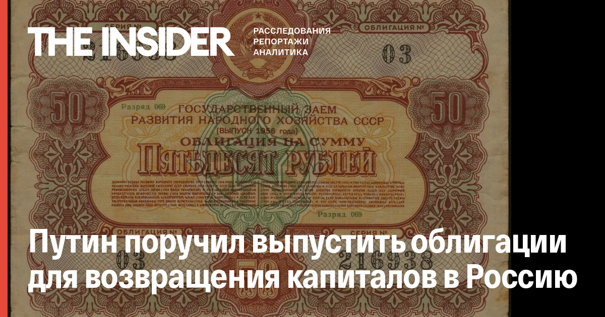 Путин поручил выпустить облигации для возвращения капиталов в Россию
