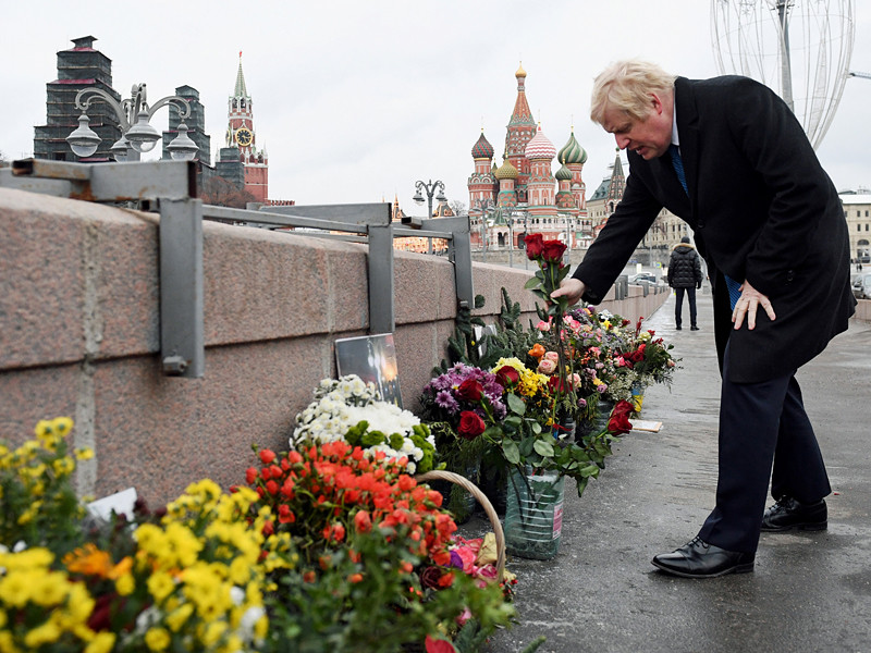 Глава МИД Великобритании Джонсон возложил цветы на месте убийства Бориса Немцова