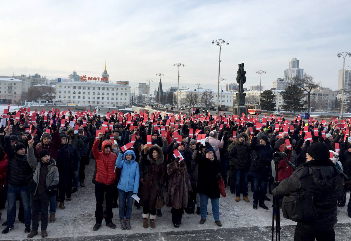 Впервые в истории собрания по выдвижению кандидата в президенты от оппозиции прошли сразу в 20 городах страны. В Екатеринбурге собралась тысяча сторонников, в Санкт-Петербурге — две тысячи