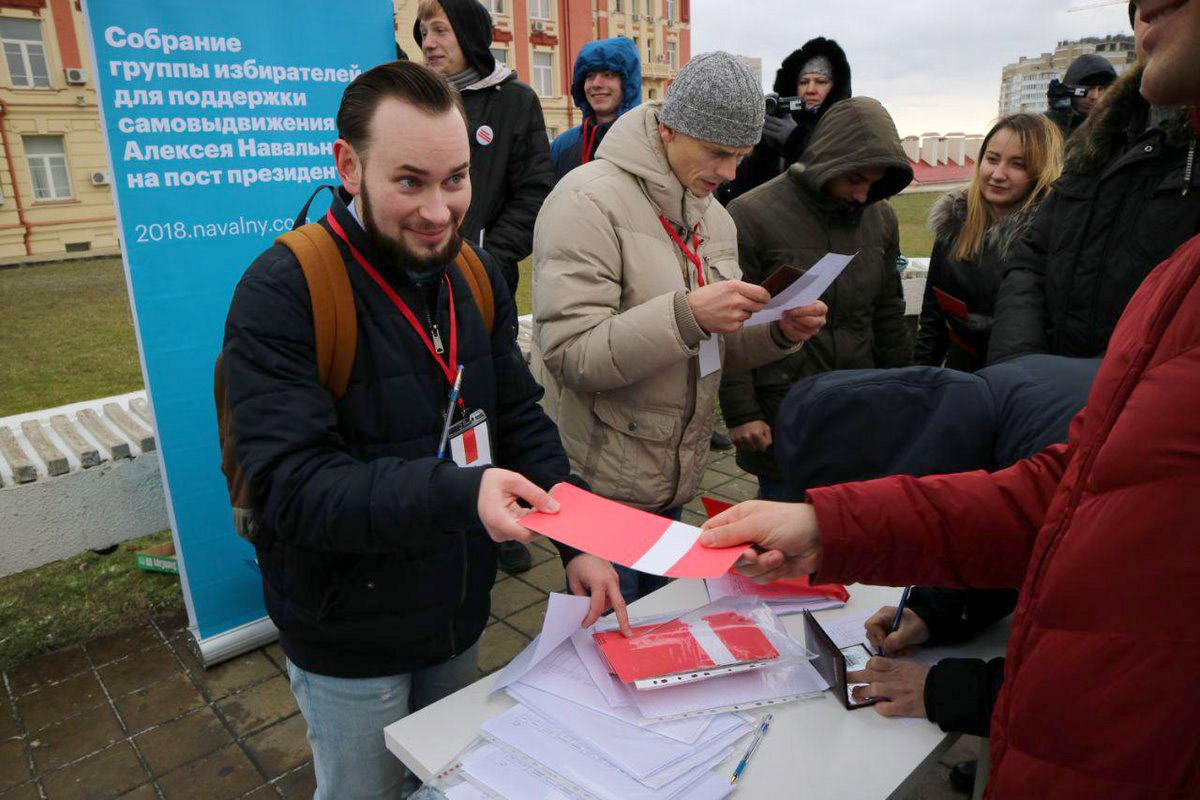 Сбор подписей за выдвижение Алексея Навального в президенты прошел в Санкт-Петербурге, на Марсовом поле. Невзирая на штормовой ветер с Невы, в течение полутора часов около двух тысяч человек, терпеливо отстояв в очередях, проголосовали за оппозиционного политика. По закону достаточно было бы всего 500 подписей, так что норма была перевыполнена почти в четыре раза.