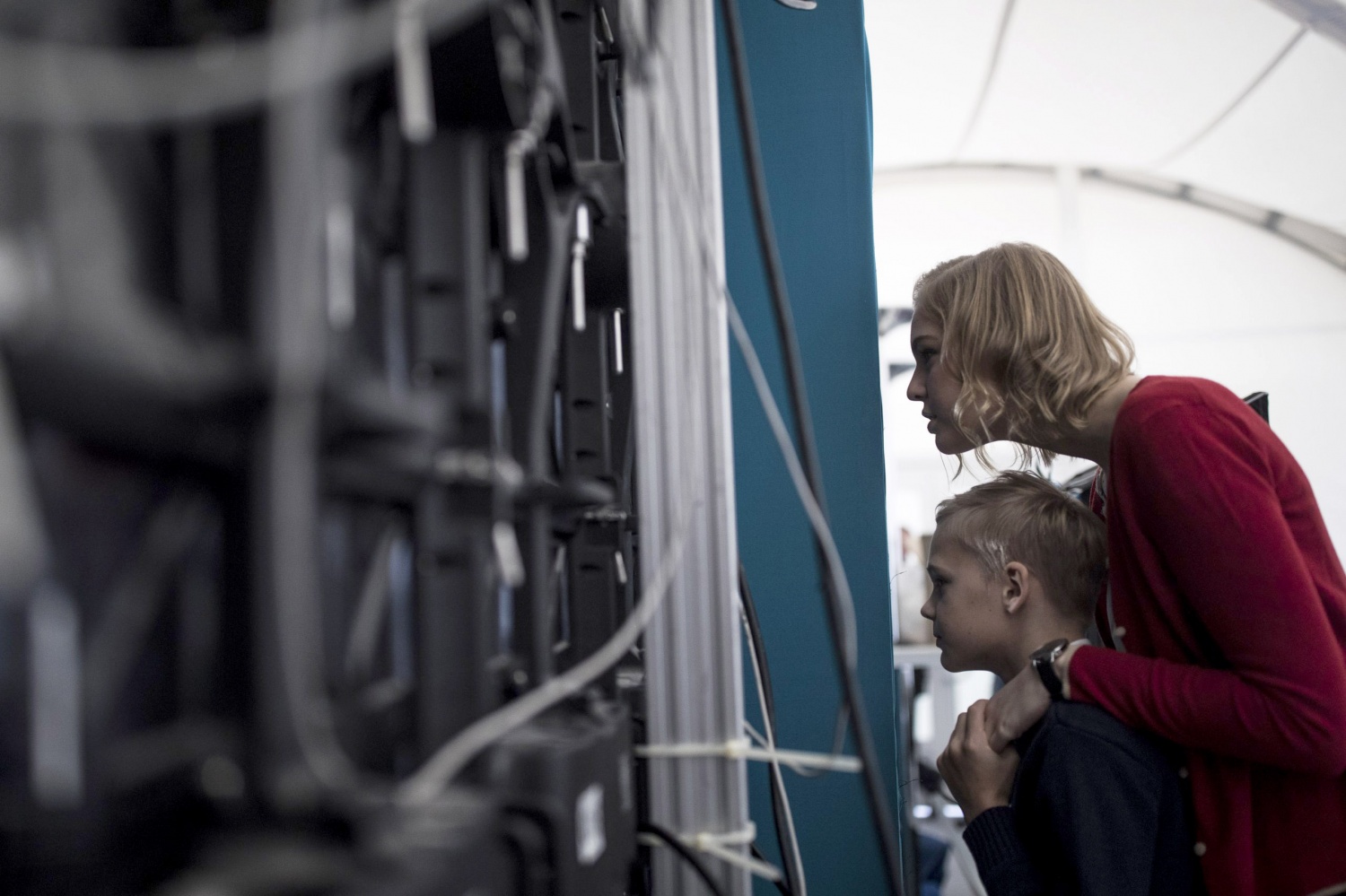 Захар и Даша Навальные следят за голосованием из-за сцены Фото: Евгений Фельдман, проект «Это Навальный»