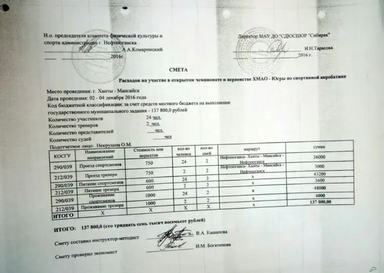Автобус не был официально зафрахтован спортшколой. По первоначальной версии, его предоставили в рамках спонсорской помощи, но уже в суде вскрылись новые подробности весьма циничного свойства. Как выяснилось, за транспорт деньги собрали с родителей. При том, что средства для поездки на соревнования были выделены спортшколе городским бюджетом: 138 тысяч рублей, из них 39 тысяч — на проезд. Больше того, оказалось, что по смете стоимость перевозки каждого ребенка была вдвое завышена (750 р вместо 350). Получается, детей не только отправили в смертельный рейс, но и нагрели на этом руки.