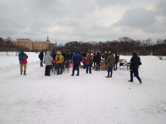В Петербурге полиция пришла на Марсово поле с видеокамерой и потребовала от сотрудников штаба Алексея Навального убрать стол и стулья, подготовленные для сбора подписей для выдвижения политика в президенты. Об этом в твиттере написал муниципальный депутат Даниил Кен.