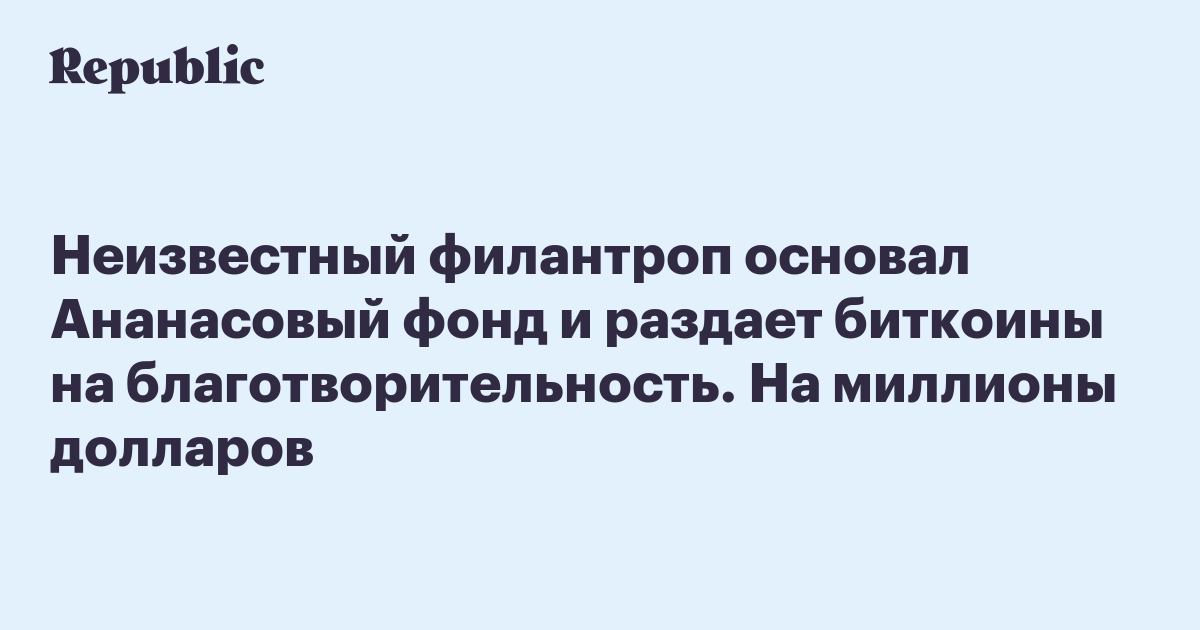 Неизвестный филантроп основал Ананасовый фонд и раздает биткоины на благотворительность. На миллионы долларов