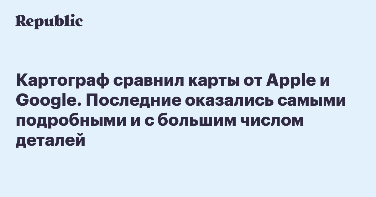 Картограф сравнил карты от Apple и Google. Последние оказались самыми подробными и с большим числом деталей