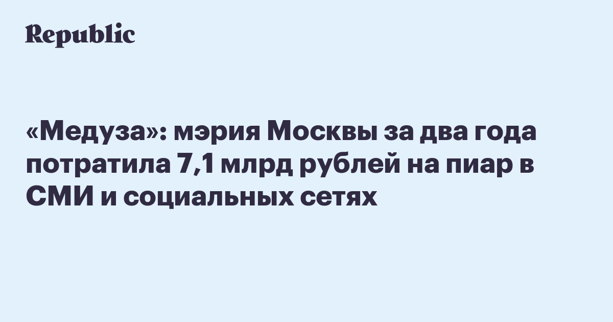 «Медуза»: мэрия Москвы за два года потратила 7,1 млрд рублей на пиар в СМИ и социальных сетях
