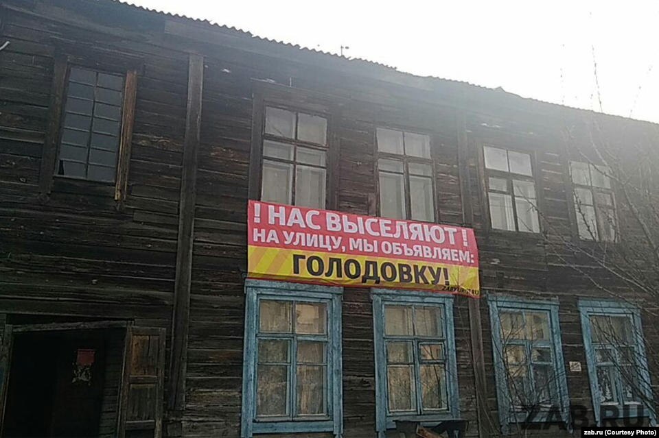 Мэрия Читы потребовала у 40 жильцов аварийного дома по улице Промышленная освободить квартиры к 27 декабря. Читинцы объявили в знак протеста голодовку, а также обратились к юристам и написали президенту России о том, что в новогодние праздники рискуют оказаться с детьми на улице.