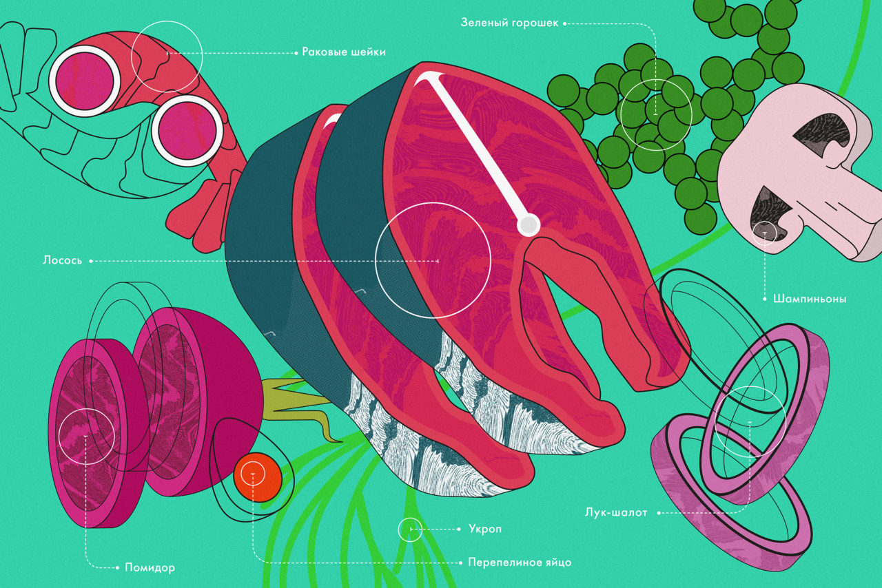Иллюстрация: Александра Федорина для ТД Рыбный оливье будущего, 8 порций