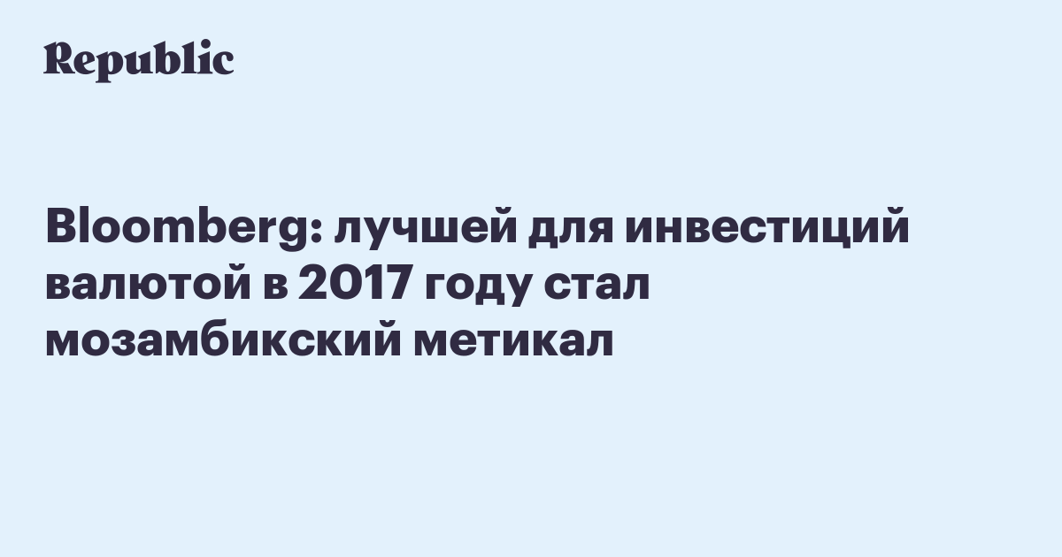 Bloomberg: лучшей для инвестиций валютой в 2017 году стал мозамбикский метикал