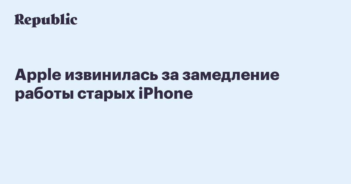 Компания Apple извинилась за замедление работы старых моделей смартфонов iPhone. Об этом сказано в пресс-релизе, опубликованном на сайте компании: