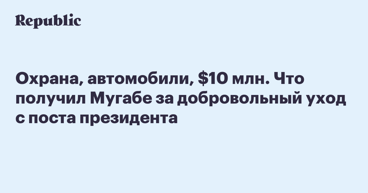 В Зимбабве в ноябре произошел военный переворот, после которого президент страны Роберт Мугабе потерял власть – переворот был бескровным, и формально лидер страны был смещен со своего поста с соблюдением демократических процедур: смещен с поста лидера собственной партии на открытом заседании, а потом объявил о добровольной отставке. Этому предшествовали длительные переговоры, в ходе которых Мугабе получил гарантии неприкосновенности, а также значительные финансовые и материальные блага. The Guardian приводит примерный перечень, что Мугабе получил в рамках сделки с новыми властями страны.