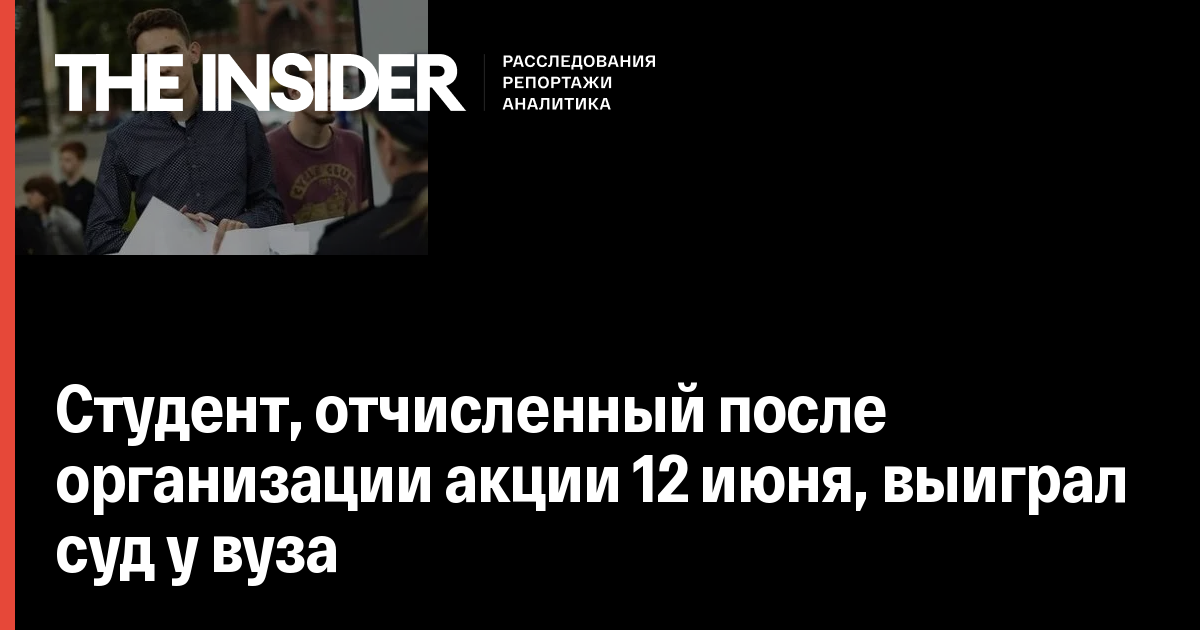 Студент, отчисленный после организации акции 12 июня, выиграл суд у вуза