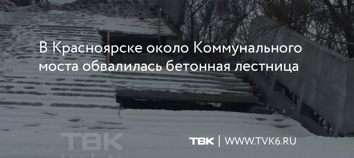 В Красноярске около Коммунального моста обвалилась бетонная лестница