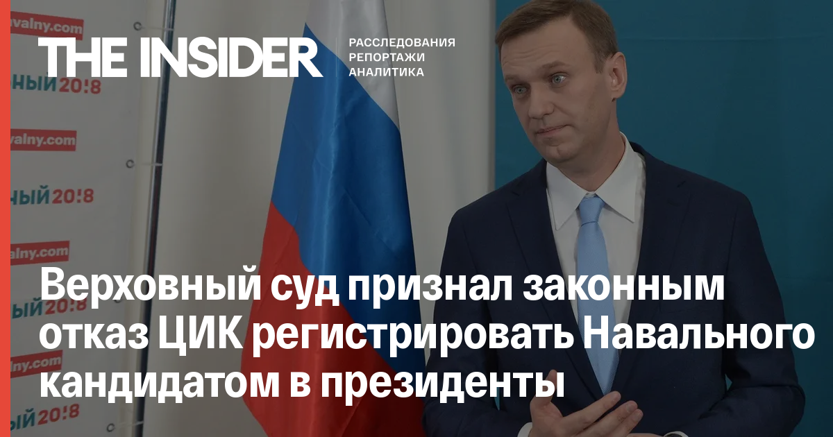 Верховный суд признал законным отказ ЦИК регистрировать Навального кандидатом в президенты