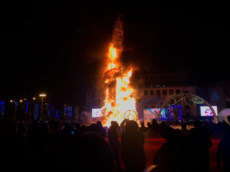 Фигуры Деда Мороза и Снегурочки загорелись вечером в воскресенье в Петропавловске-Камчатском возле главной елки на глазах горожан, передает Kam24.