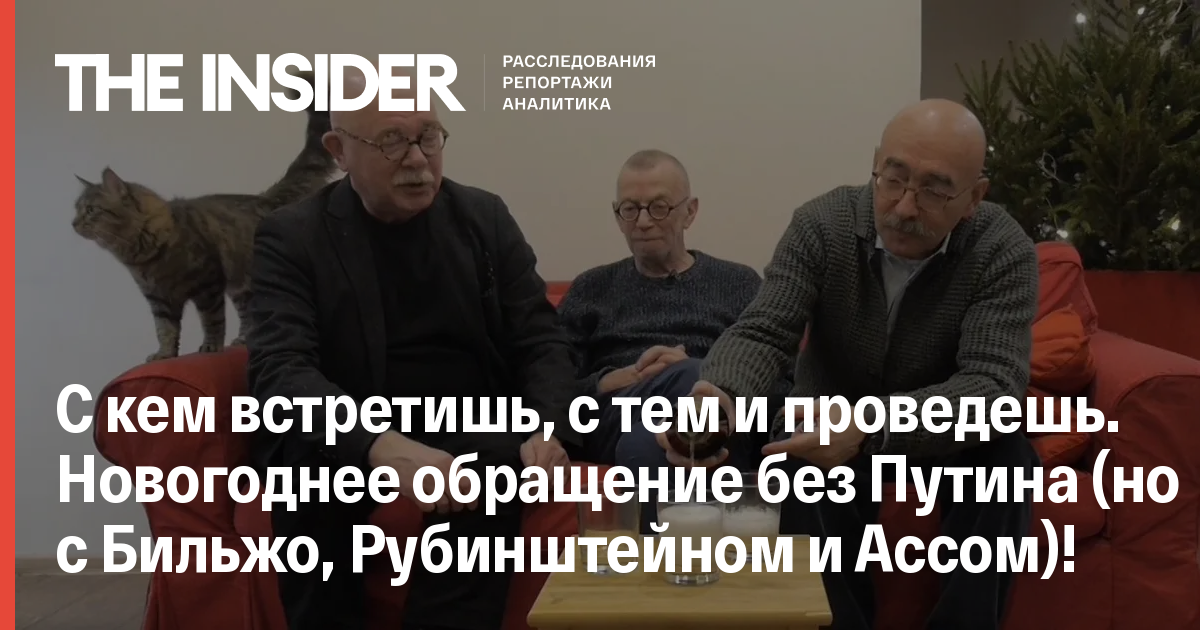 31 декабря 2017Тоже любите встречать Новый год под бой курантов? Но надоело слушать обращения Путина? The Insider предлагает вам достойный вариант. За 4 с половиной минуты до полуночи включайте это альтернативное новогоднее обращение, с которым выступят поэт Лев Рубинштейн, архитектор Евгений Асс, художник Андрей Бильжо и кот Марк.