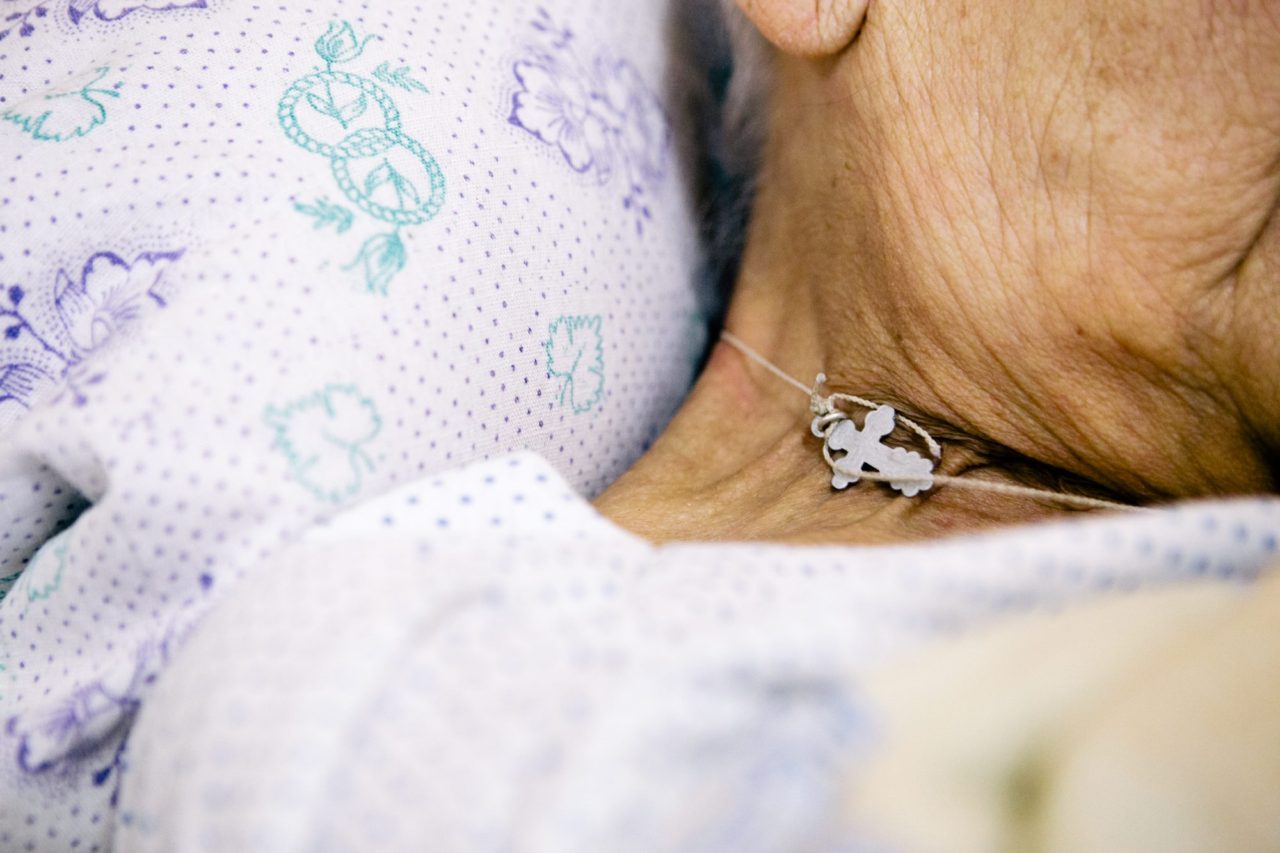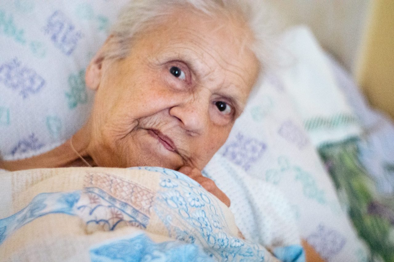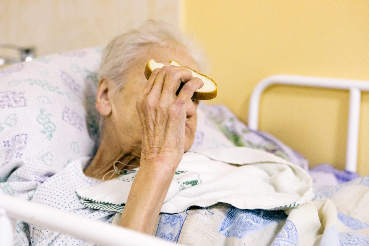 В коридоре первого паллиативного отделения Максимилиановской больницы светло и чисто. Совсем недавно здесь сделали ремонт. Двери в палаты открыты — ни одной свободной койки. На кроватях, расставленных по периметру, лежат женщины, на вид 80—90 лет. У них белоснежные волосы. Их движения — замедленное немое кино. Вот в палате слева медсестра меняет подгузник безмолвной пациентке: «Зиночка, подними попу. Еще выше. Молодец, Зиночка». В палате справа простоволосая старушка приподнялась на локте в кровати и с надеждой смотрит в дверной проем. Ждет, когда медсестра закончит с Зиночкой и поможет ей.