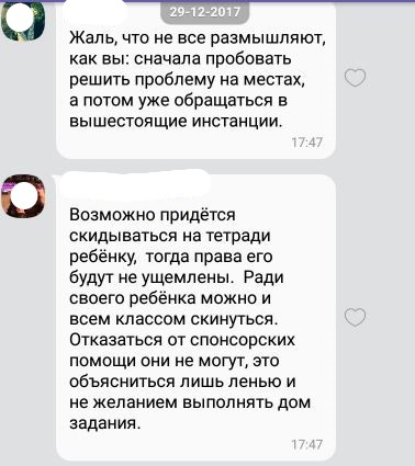 Но, как и во многих других случаях, сама школа осталась в стороне, натравив на «шибко умную» мамочку родительский комитет.