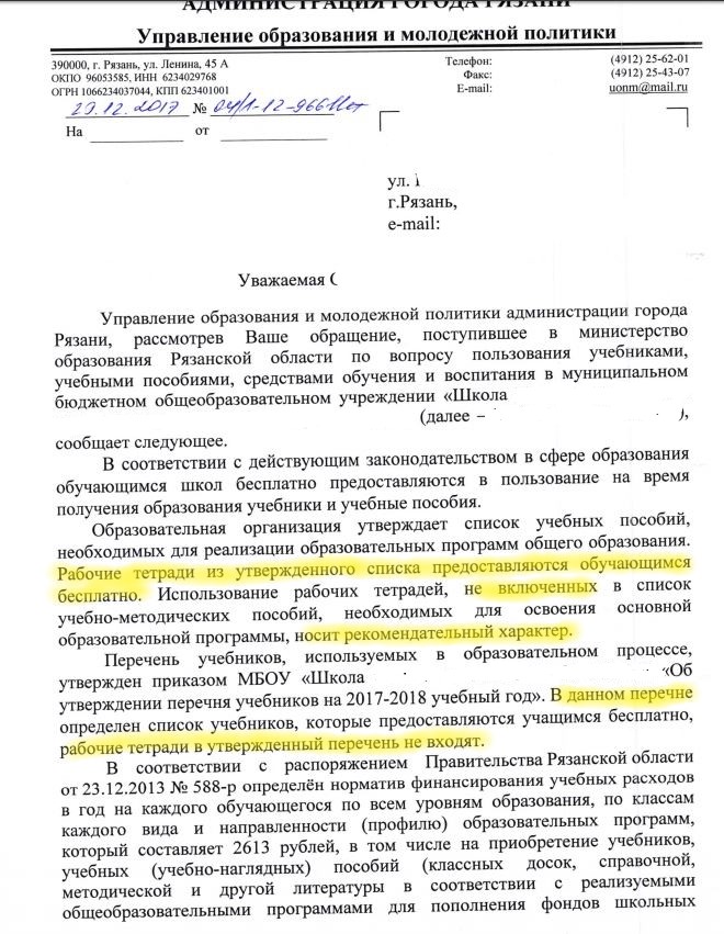 29 декабря в одной рязанской школе запретили применение рабочих тетрадей на уроках.