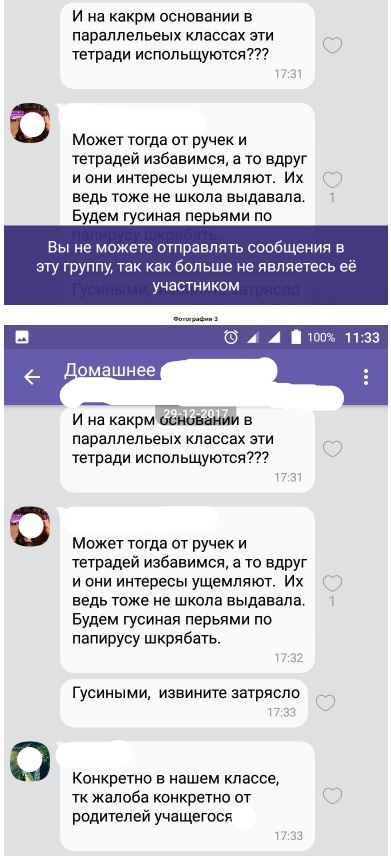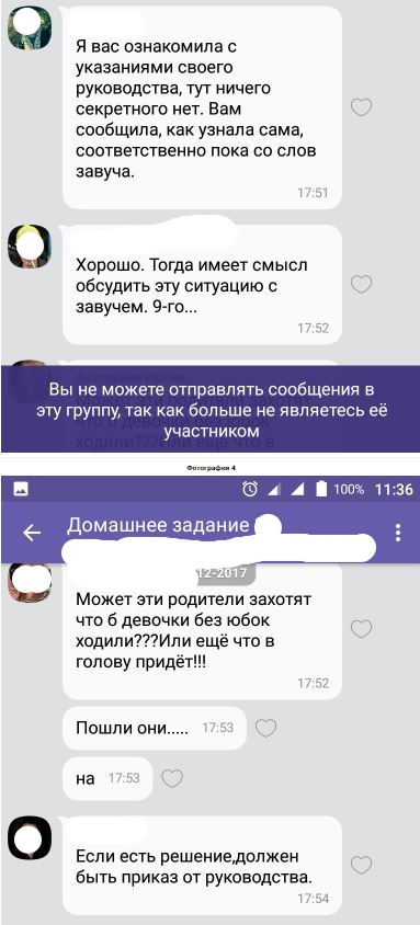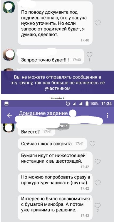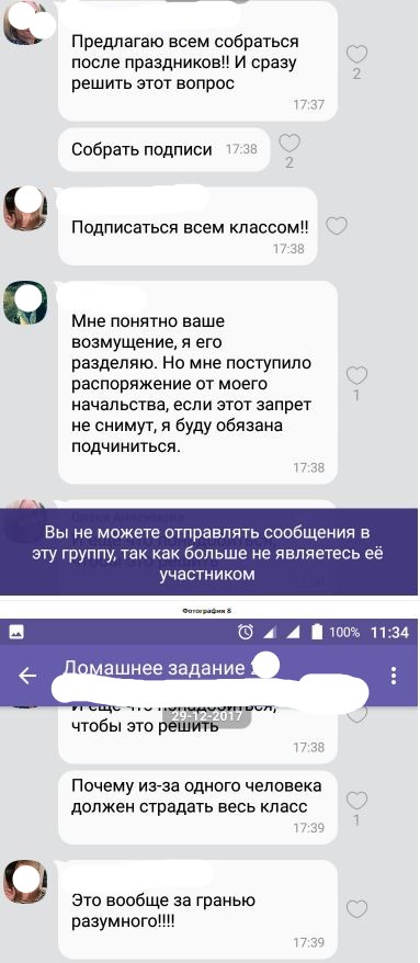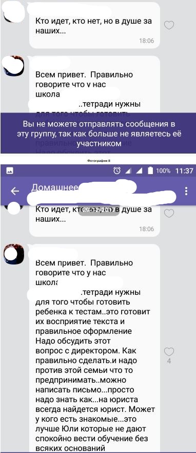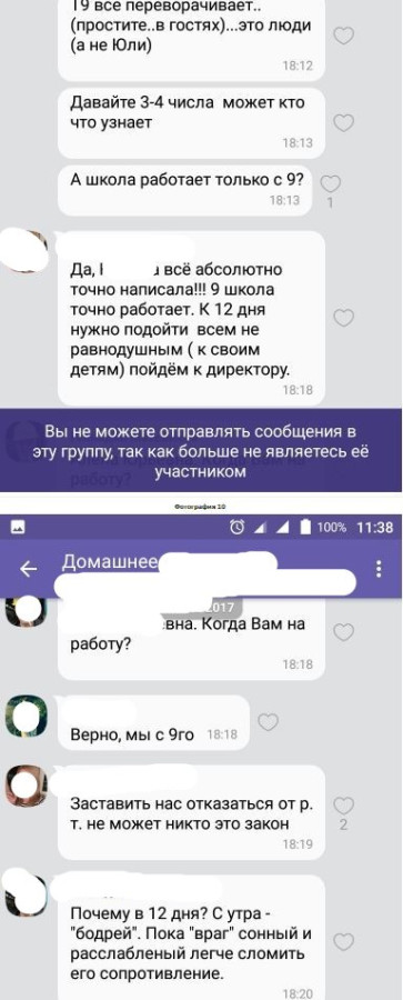 Завуч сказал учителю: если не вытравите неугодную родительницу в ближайшие дни, останетесь без работы. Настраивайте себе в союзники родительский комитет, давите на «это всё для ваших детей», «детки останутся без знаний, а знания только в рабочих тетрадях», делайте что угодно, но быстро, очень быстро! У вас же есть чатик, побеседуйте там мило и понимающе! Действуйте! А мы вам поможем, чем сможем.