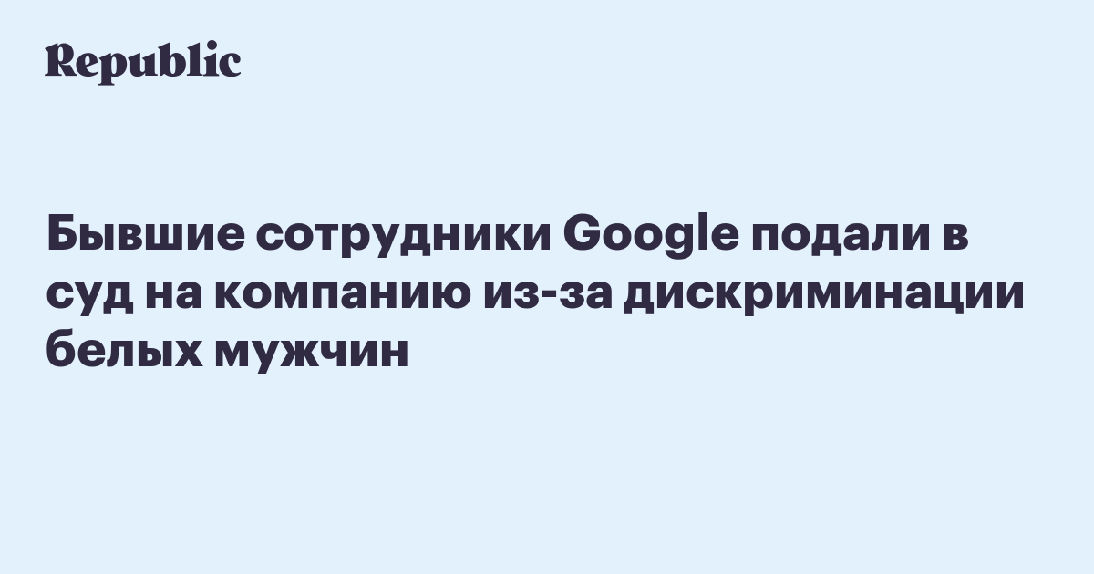 Бывшие сотрудники Google подали в суд на компанию из-за дискриминации белых мужчин
