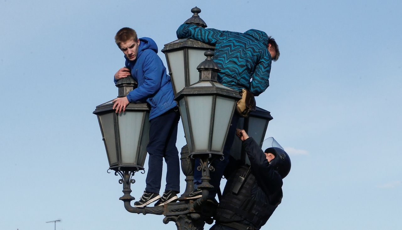 … and Moscow high school students climbing a lamppost at a demonstration (see above).