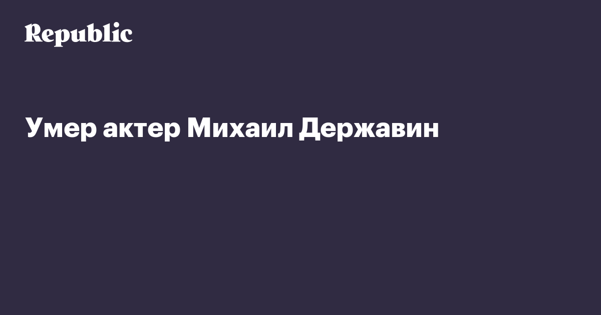 Умер актер Михаил Державин