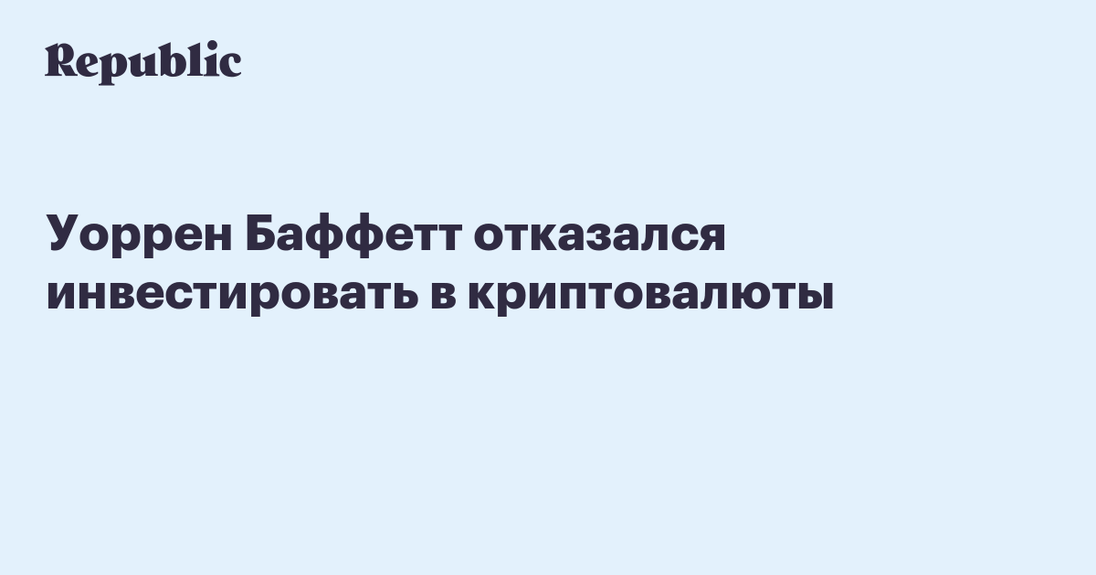 Миллиардер Уоррен Баффетт заявил, что не будет инвестировать в криптовалюты. Об этом он заявил в интервью CNBC.