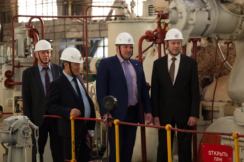 Генеральный директор АО «СИБЭКО» Руслан Власов показал врио губернатора реконструированного турбоагрегата ТА-11.
