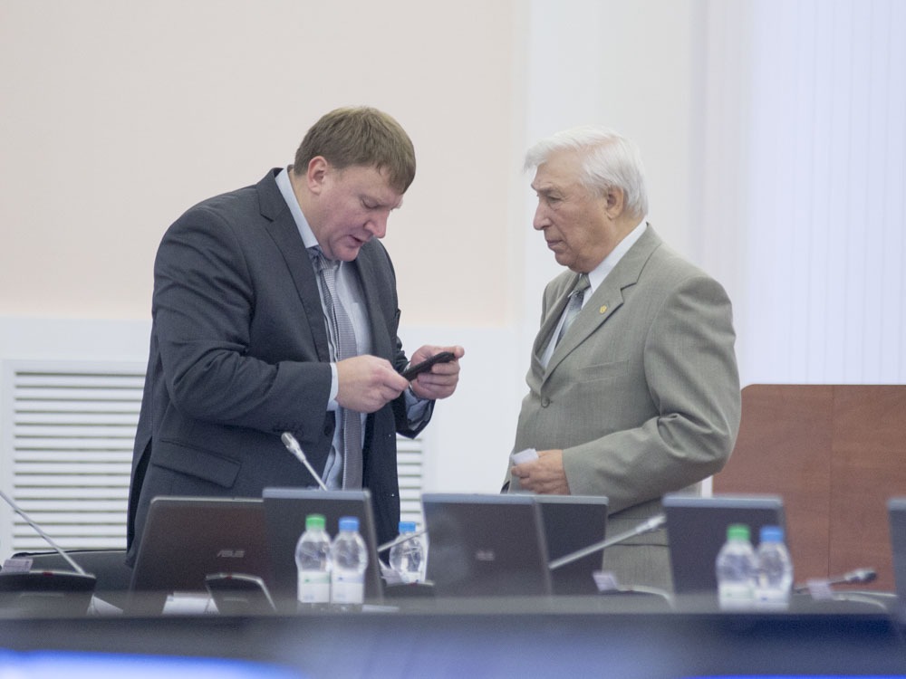 Бывший глава Псковского района Владимир Шураев (слева) неожиданно стал яростным оппонентом действующего главы муниципалитета Владимира Лавренова. Фото: Артём Аванесов.