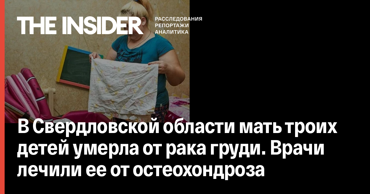 В Свердловской области мать троих детей умерла от рака груди. Врачи лечили ее от остеохондроза