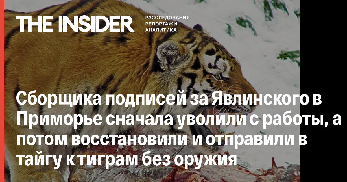 Сборщика подписей за Явлинского в Приморье сначала уволили с работы, а потом восстановили и отправили в тайгу к тиграм без оружия