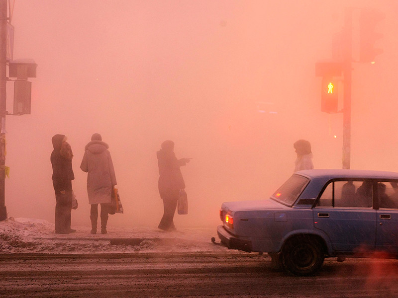 Центр Омска из-за прорыва трубы на морозе превратился в каток