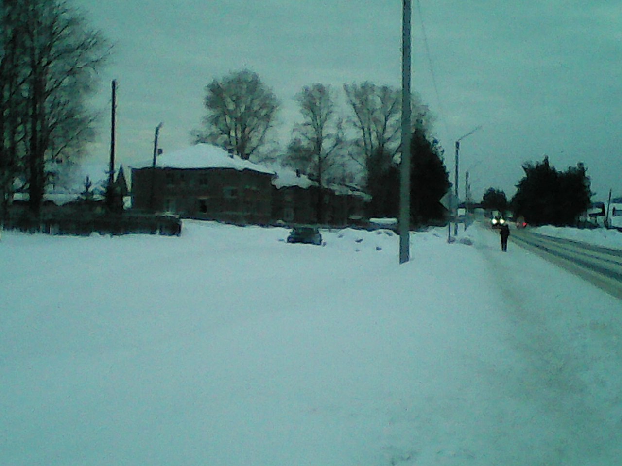 Так что же происходит с зоной опережающего развития? Почему все в сугробах?! Я дождался снегоуборочную машину и посмотрел, как она работает. Оказалось все банально, снегоуборочная техника не работает, а делает видимость работы. На фото прекрасно видно, как снегоуборочная машина едет по центру дороги, нож не образует снежный вал, а обочина вся в снегу и по обочине идет пешеход. Потому что тротуары завалены снегом. А на заднем плане мы видим заброшенные многоквартирные дома с печным отоплением.