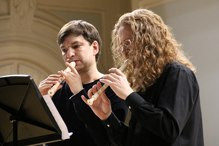 Открывшая фестиваль «Поэма о Сталине» Хачатуряна, переложенная для фортепиано в четыре руки и исполненная двумя яркими пианистами Вадимом Холоденко и Яковом Кацнельсоном (первый из которых, кроме того, — виртуоз фейсбучного стеба), сразу задала фестивальный тон — сочетание неожиданности, мастерства, увлеченности и спасительной иронии. По большому счету, «Возвращение» с его фирменными приколами в текстах буклета (например, в биографической справке про Холоденко сообщается, что концерт пианиста во Львове «обрушил курс биткоина на тысячу пунктов») — это такой остров здорового музыкального пересмешничества в океане Высокого и Чистого Искусства. Здесь никого не удивляет, что для исполнения «Уличной песенки» Орфа руководители фестиваля Роман Минц и Дмитрий Булгаков вместо скрипки и гобоя запросто берут в руки детские дудочки.