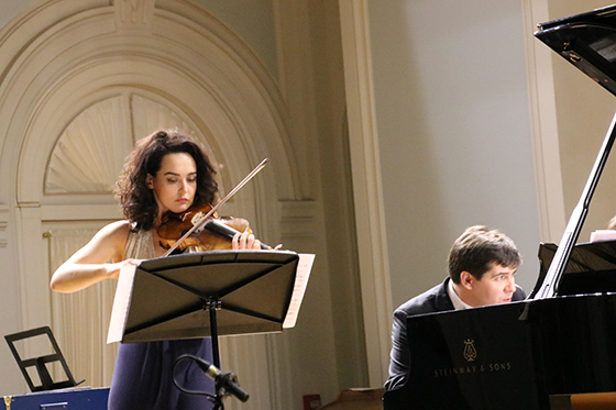 © Инесса Кудрявцева Алена Баева и Вадим Холоденко играют «оппортуниста» Сен-Санса Второй вечер назывался «Несвобода». Для атмосферности сначала запустили в записи фольклорное голошение на школьный пушкинский текст «Сижу за решеткой в темнице сырой». Основная же программа почти вся была собрана из уникальных партитур, сочиненных и записанных (чем попало на чем попало, даже углем на туалетной бумаге) во время нахождения их авторов в заключении. Самого главного такого текста — «Квартета на конец времени» Оливье Мессиана — правда, не было. Наиболее знаменитые «сидельцы» из этой программы — выживший в сталинских лагерях Всеволод Задерацкий (Ксения Башмет исполнила один номер из его масштабного фортепианного цикла из 24 прелюдий и фуг, написанных на Колыме) и погибший в Аушвице Виктор Ульман («Три песни» в сопровождении скрипача Бориса Абрамова, альтиста Ильи Гофмана и виолончелиста Александра Неустроева спела Светлана Злобина; буклет скупо сообщил, что предыдущим сочинением композитора был струнный квартет, исполненный силами заключенных, но, видимо, вскоре струнников в лагере осталось только трое).