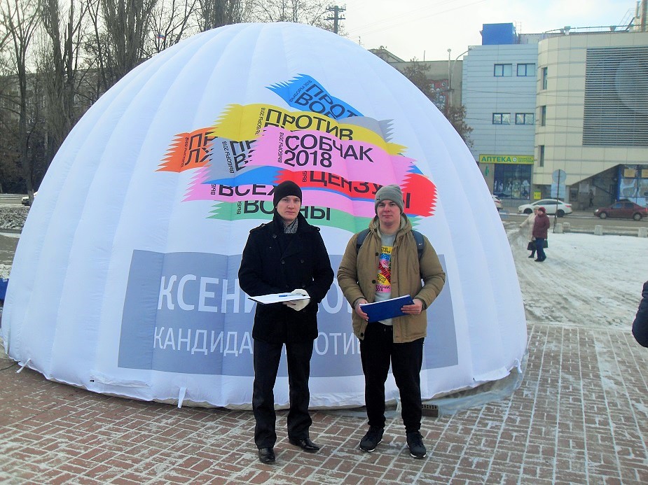 В Курске 14 января мужчина, представившийся «охранником территории», хотел помещать установке агитационной юрты на площади Советов и сбору подписей в поддержку кандидата в президенты России Ксении Собчак, сообщил корреспондент «7x7».