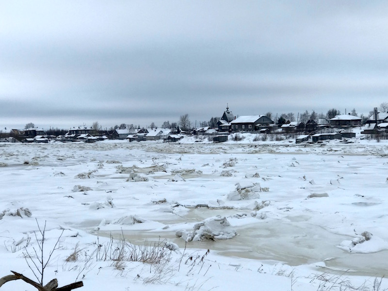 Вид на посёлок Рабочеостровск. Хорошо видно, что лёд постоянно ломает…