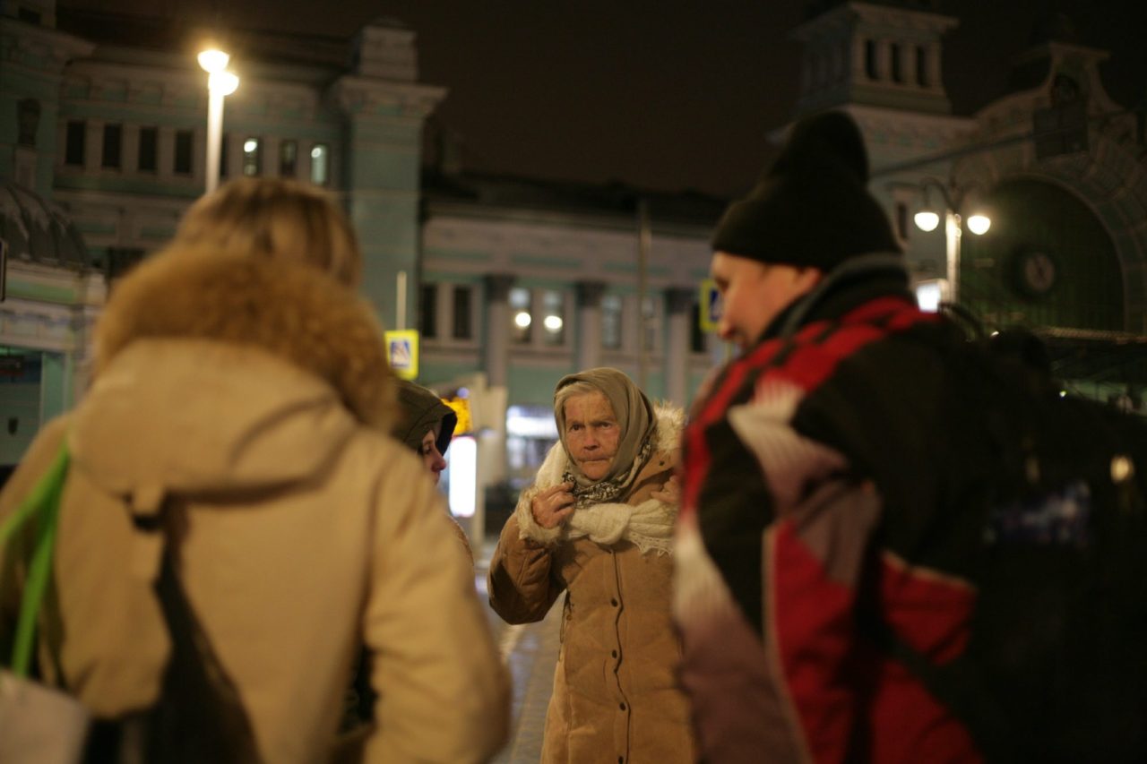 Нелла Степановна, Андрей и волонтер «Лизы Алерт» Татьяна у Белорусского вокзалаФото: Светлана Софьина для ТД «Знаете, в больнице очень страшно, — вдруг тихо сказала Нелла Степановна. — Они все думали, я сумасшедшая, а я просто забыла немного, как в больницу попала». «Но рядом со мной знаете кто лежал?» — шепчет женщина и крутит пальцем у виска. Последнюю ночь в больнице Нелле Степановне не давала спать другая пациентка: кричала, рвала одежду и билась о стены. «Я ей пальцем пригрозила и сказала, что она получит у меня, если будет плохо себя вести! Она успокоилась. В общем, навела я порядок», — гордится Нелла Степановна.