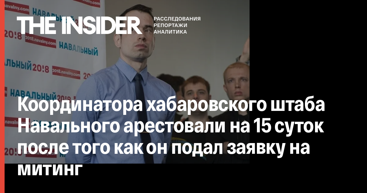 Суд отправил координатора хабаровского штаба Навального Алексея Ворсина под арест на 15 суток по делу о нарушении порядка проведения массовых мероприятий.